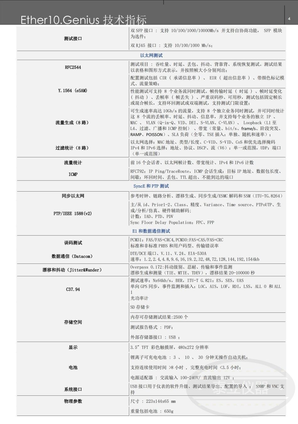配置 :Ether.Giga手持式測試儀、鋰電池、雙10/100/1000 Mb / s RJ-45電端口,雙SFP光端口、包括AC / DC適配器、一根RJ-45跳線和便攜包。