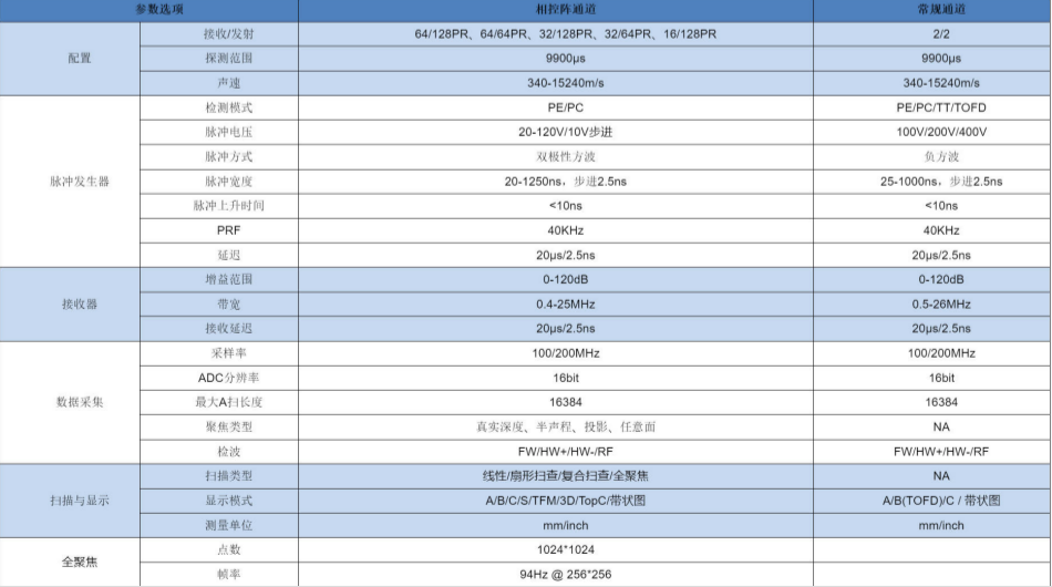 NovaScan V2 相控陣超聲檢測儀硬件通道數(shù)可選擇64/128PR、64/64PR、32/128PR、32/64PR、16/128PR五個全新版本,儀器兼具TFM全聚焦、PWI(平面波)全聚焦、常規(guī)相控陣檢測、獨(dú)立TOFD/UT檢測(雙通道),功能完善,實(shí)用性強(qiáng),尤其適用于實(shí)驗(yàn)室及復(fù)雜現(xiàn)場的檢測。