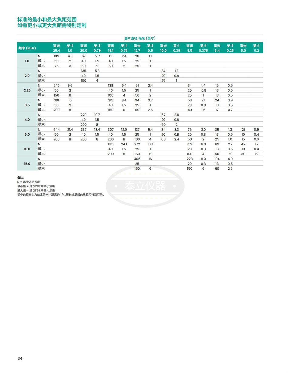 10MHz單元,5 mm Ø,點(diǎn)焦距15 mm