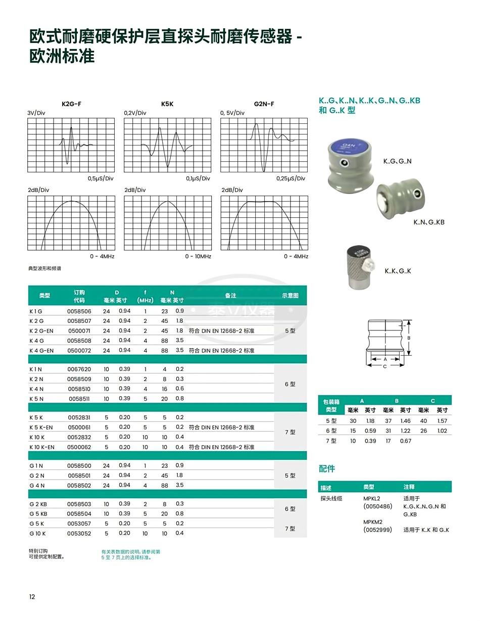 USD10NF特別適合于這類任務。類型 f [MHz] 接觸面積 探頭電纜 K0.25G 0.25 45 mm Ø PKTL2 K0.1G 0.1 45 mm Ø PKTL2 B0.05N 0.05 30 mm Ø PKTL2 B0.05NN 0.05 5 mm Ø PKTL2 G0.2R1 0.2 60 mm Ø PKTL2 B0.05US 0.05 56 mm Ø PKTL2 B0.05UE 0.05 56 mm Ø PKTL2 -
